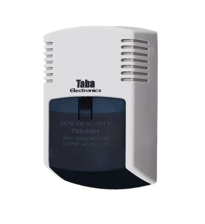 برق ورودی ترانس آیفون تصویری تابا، 220 ولت با فرکانس 50 هرتز و برق خروجی 12 ولت AC با جریان 1/2 آمپر میباشد. منبع تغذیه تابا 8401 هم در آیفون تصویری تابا و هم در آیفون صوتی تابا قابل استفاده میباشد.